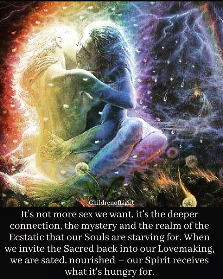 As I think about what the Soul craves, I believe it’s deeper connection. I love the image and quote above and find it interesting that when I think of “love making” – I think of this from the deeper Spiritual realm which adds a joyfully-ecstatic union with the divine within ourselves and that brings a heartfelt loving experience into our lives. This union is not limited to sex (but can certainly include this), yet it is an expansive space that is filled with humility, honesty and integrity in our own alignment with our thoughts, words and actions. I never knew such a space even existed but through many years of mindfully surrendering again, and again, and again, the egoic tendencies that may make me feel better than or less than anyone or anything else… I feel this space. It welcomes me and my work continues.